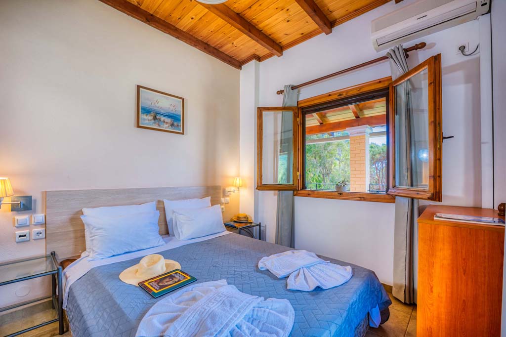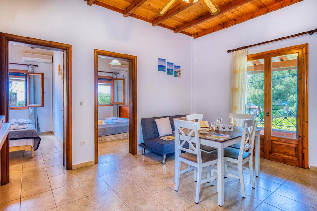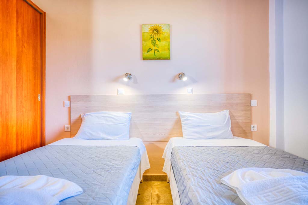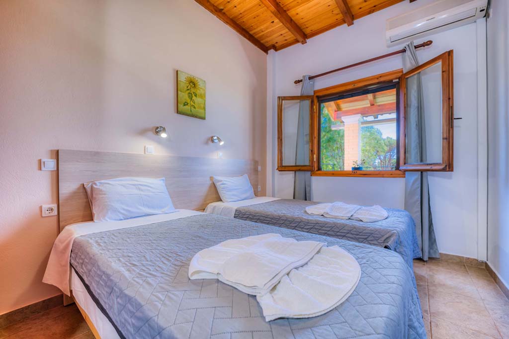 This type of unit/apartment is comprised of a kitchen area, two separate bedrooms with 1 twin bed and 2 single beds, private bathroom with shower. An extra bed can be added to to accommodate 5 people.