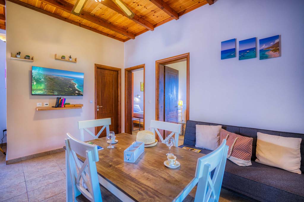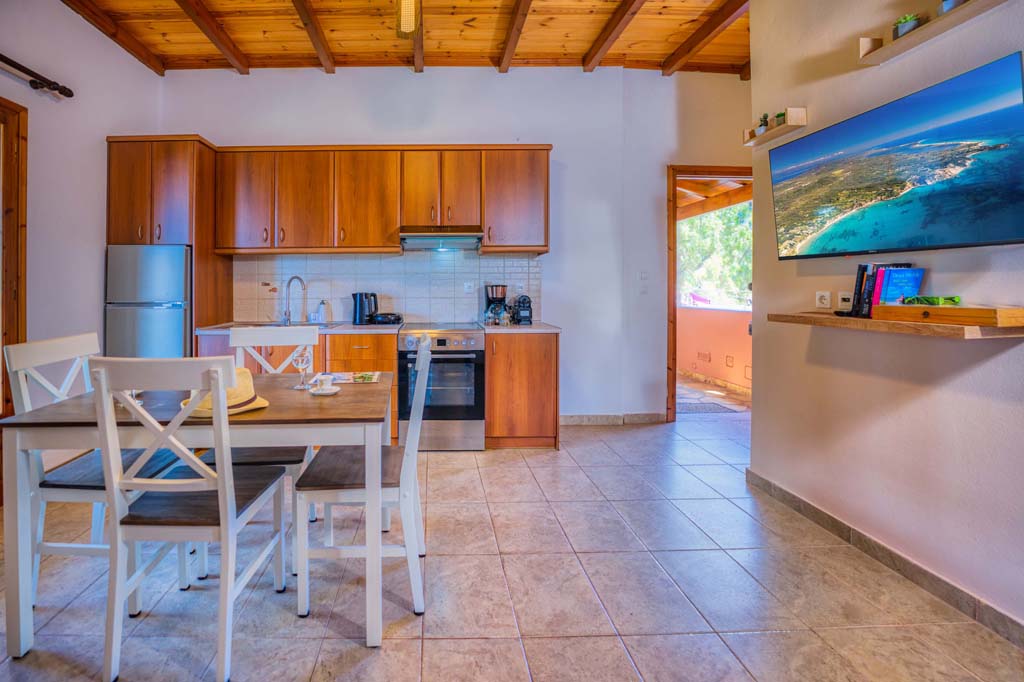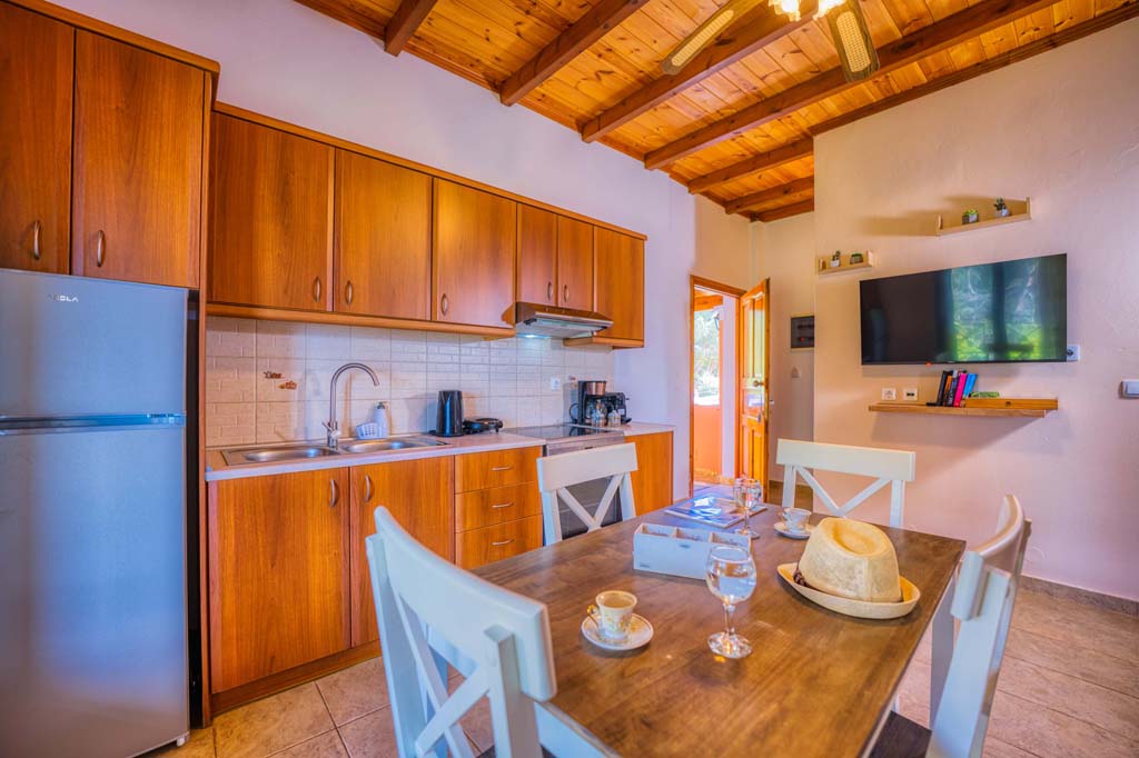 Facilities: Fully equipped kitchen with refrigerator, oven, mini grill oven, kettle, coffee machine and toaster, widescreen TV, and air conditioning.